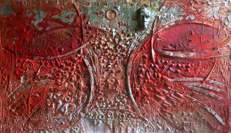 Mixed media on wood panel